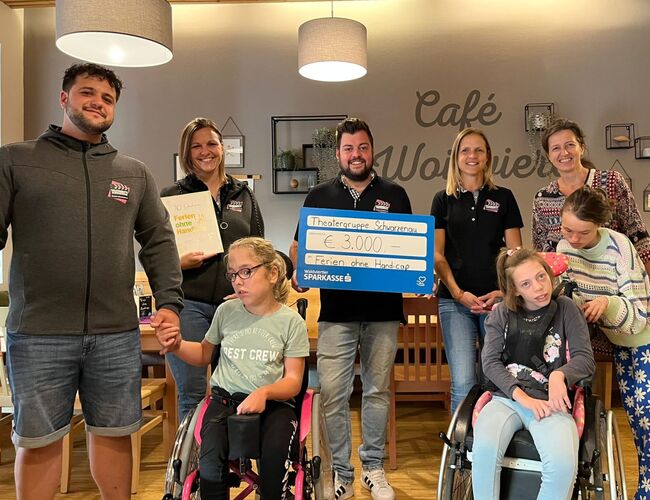 Die Theatergruppe Schwarzenau überraschte uns mit einer großzügigen Spende für unsere Feriencamps. Bei ihrem Besuch bei unserem 2. Sommercamp überreichten sie uns einen Scheck über stolze € 3.000,-