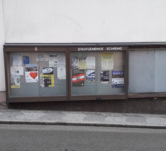 Herzlichen Dank an Bürgermeister Peter Müller und die Stadtgemeinde Schrems für das Aufhängen unseres Plakates!